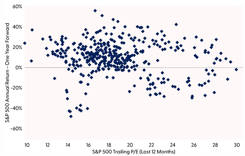 Relationship between S&P 500 price-to-earnings ratio and future one-year performance is weak