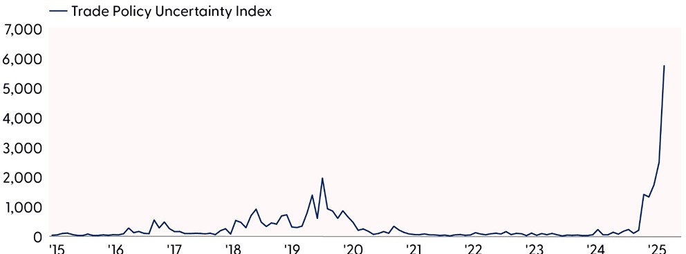 Disclosures: Indexes are unmanaged and cannot be invested in directly. The Trade Policy Uncertainty Index measures news reports of uncertainty related to trade.